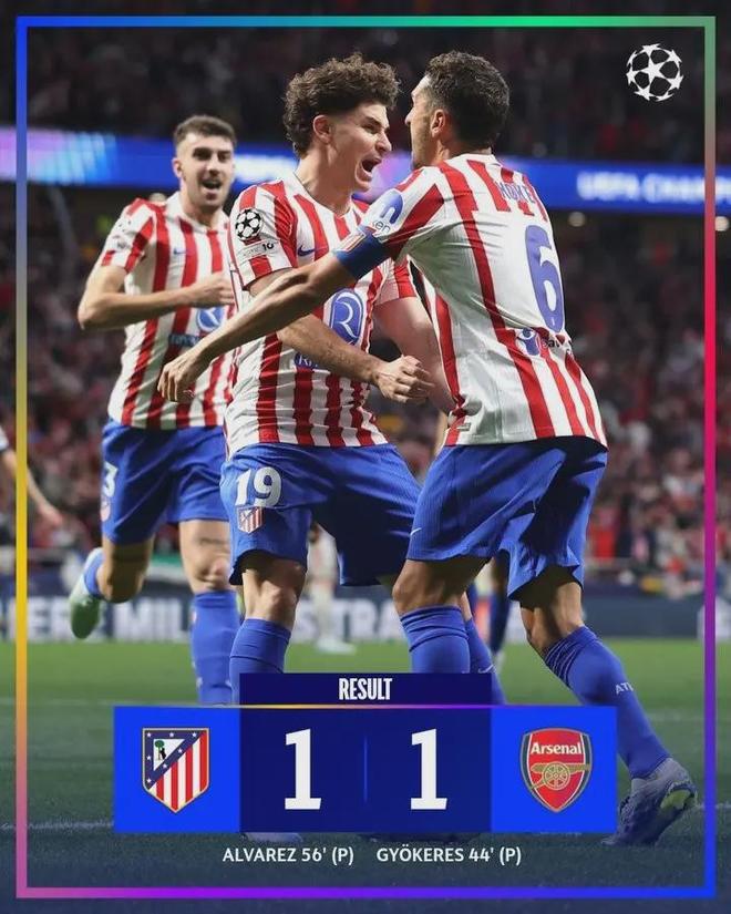 在大都会球场的这个夜晚,当巴黎与拜仁在另一片场地上演足以载入史册的9球狂宴时,马德里竞技与阿森纳却联手献上了一场令人窒息的“反足球”表演——两粒进球,全部来自点球。这是自2001年以来,欧冠淘汰赛首次出现如此奇观。
